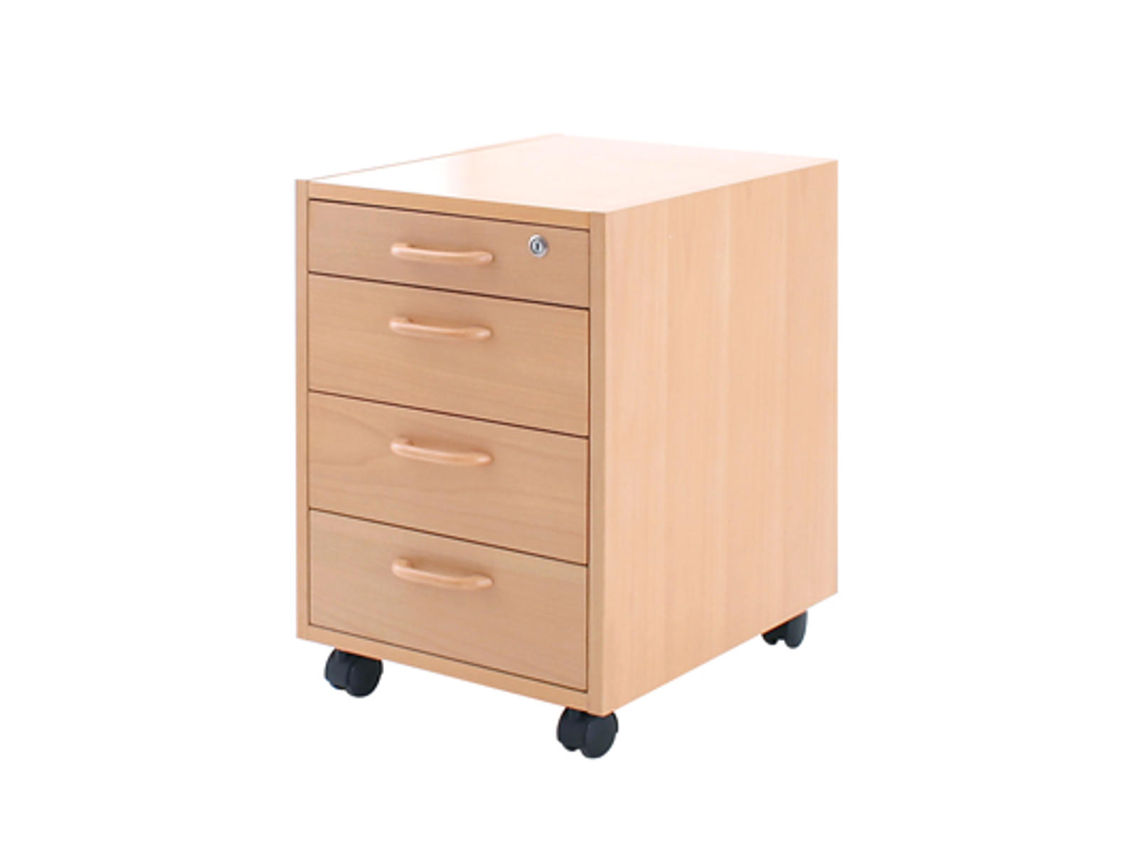 Mobil skuffekassette i ægte bøgefinér med tidløse trægreb og fire skuffer.