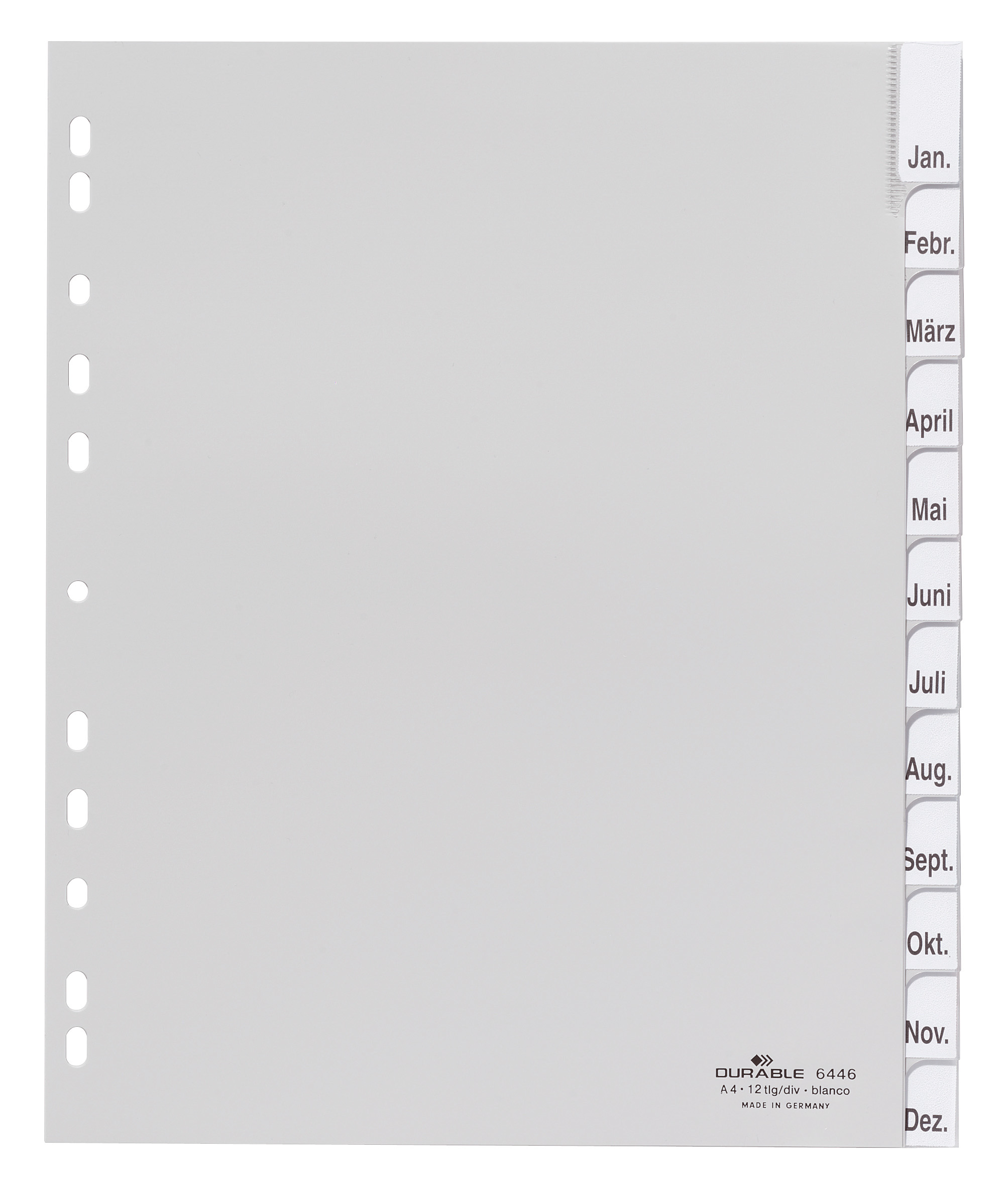 Holdbar og slidstærk ekstra bred faneblade i kraftig pp-plast med dobbelte faner, hvor fanepapiret kan udskiftes. Kommer med ekstra ark med utrykte hvide og utrykte farvekodede indstik for egen tekst, som indsættes i fanerne. Universalhullet. 12-delt. Forbladet og faner kan udskrives med gratis skabelon på www.duraprint.dk