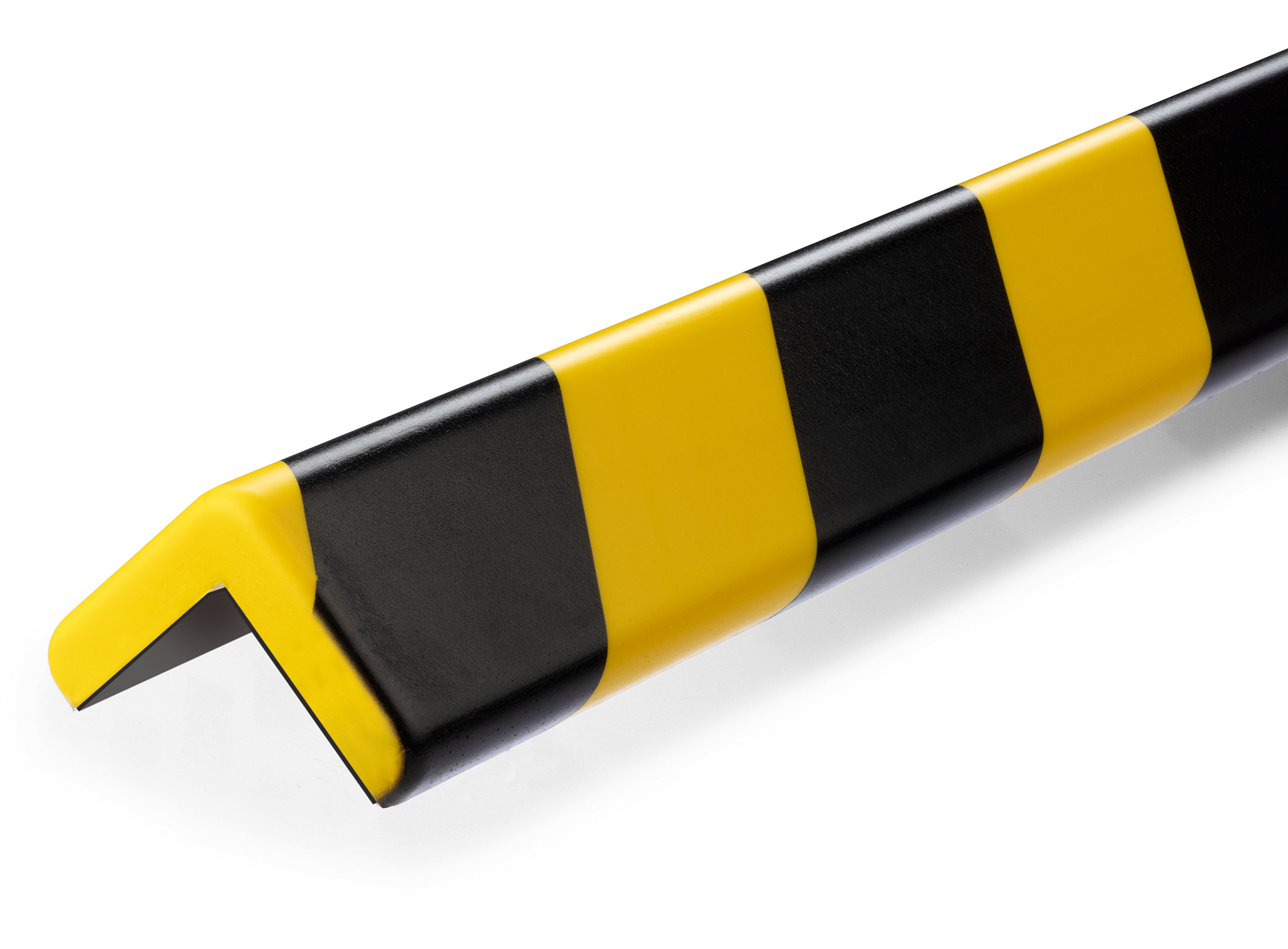 Advarsels- og beskyttelsesprofiler som denne hjørnebeskyttelse anvendes i industrier og andre indendørs miljøer til at beskytte personer, køretøjer og møbler i tilfælde af mindre kollisioner. De sort/gule striber advarer mod skarpe hjørner, og polyuretanskummet, som beskyttelsesprofilen er fremstillet af, er stødabsorberende. Magnetisk overflade der klæber på metal ved temperaturer på -30°C – +70°C. Farvenuancer i henhold til ASR A1.3 svarende til RAL 1004/9003 (signalgul/signal-sort). Testet i henhold til brandklassificering DIN EN 13501-1 klasse E. Temperaturbestandig fra -30°C – + 70°C. Længde 1 m. Udvendig længde 45 + 45 mm, længde af magnetisk overflade 35 + 35 mm, tykkelse 10 mm