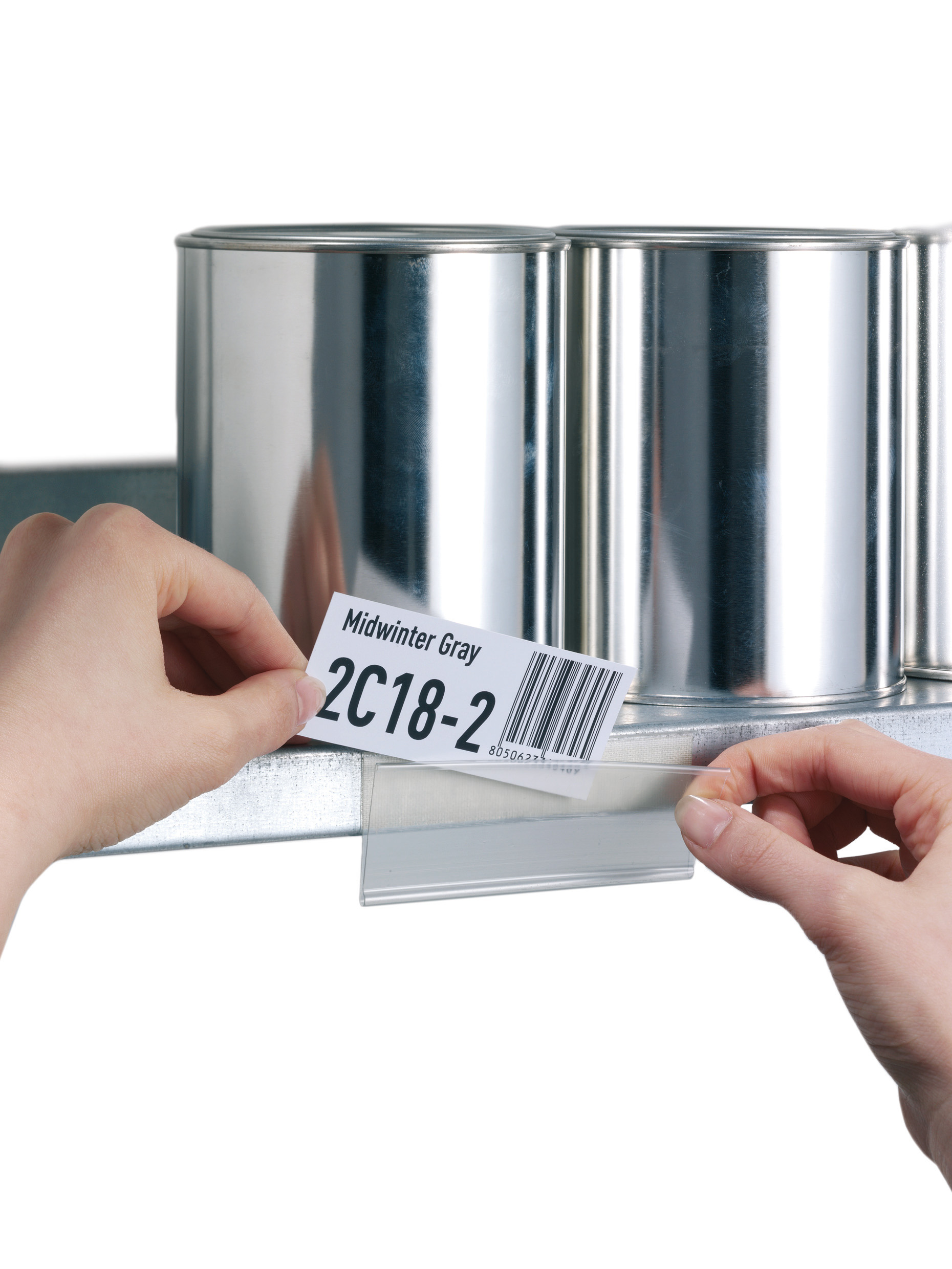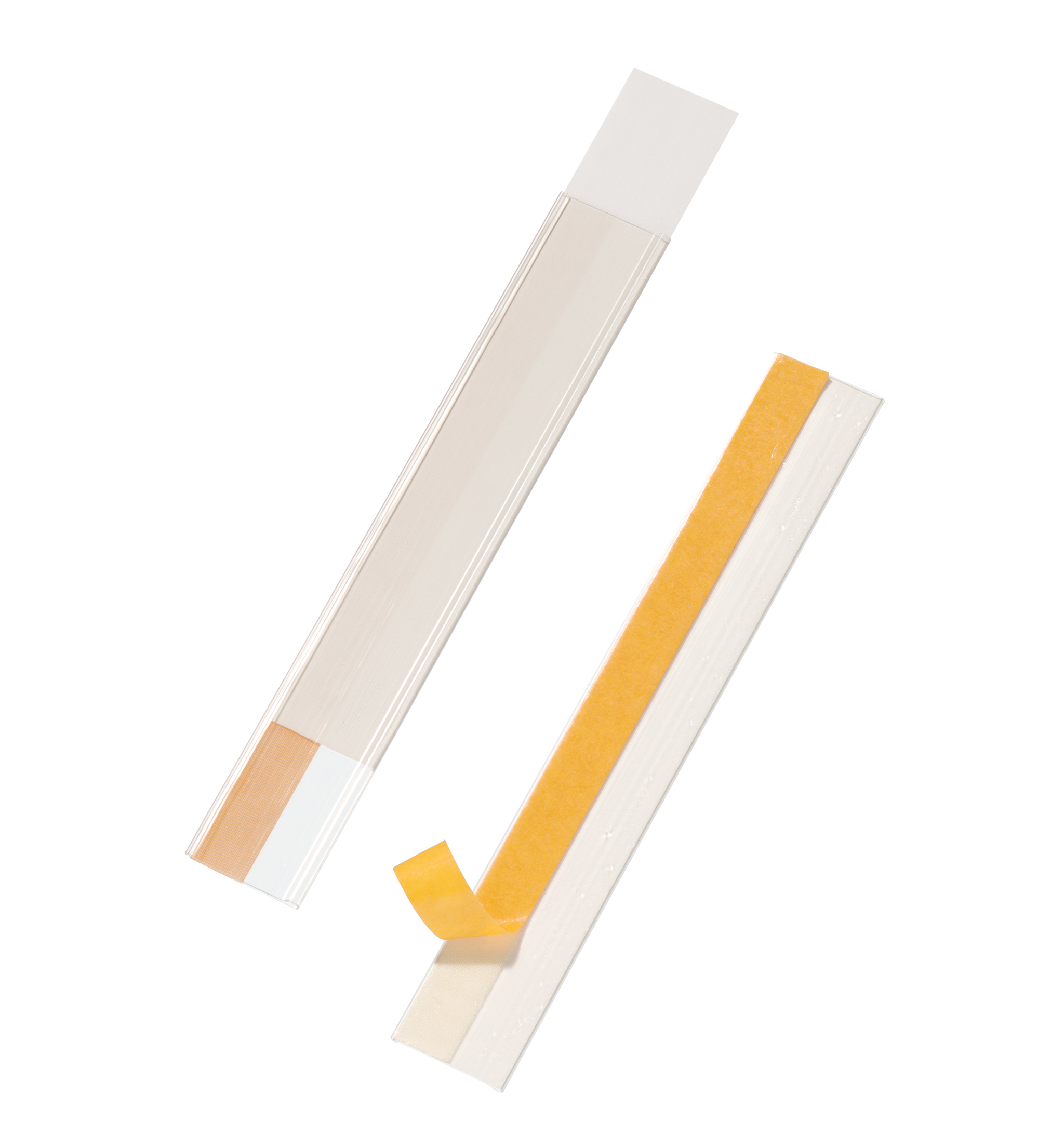 Selvklæbende, scanbar etiketholder til mærkning af f.eks. hyldeforkanter. Åben i toppen og i siden. Skrivehøjde 3,7 cm, længde 20 cm. 50/pakke