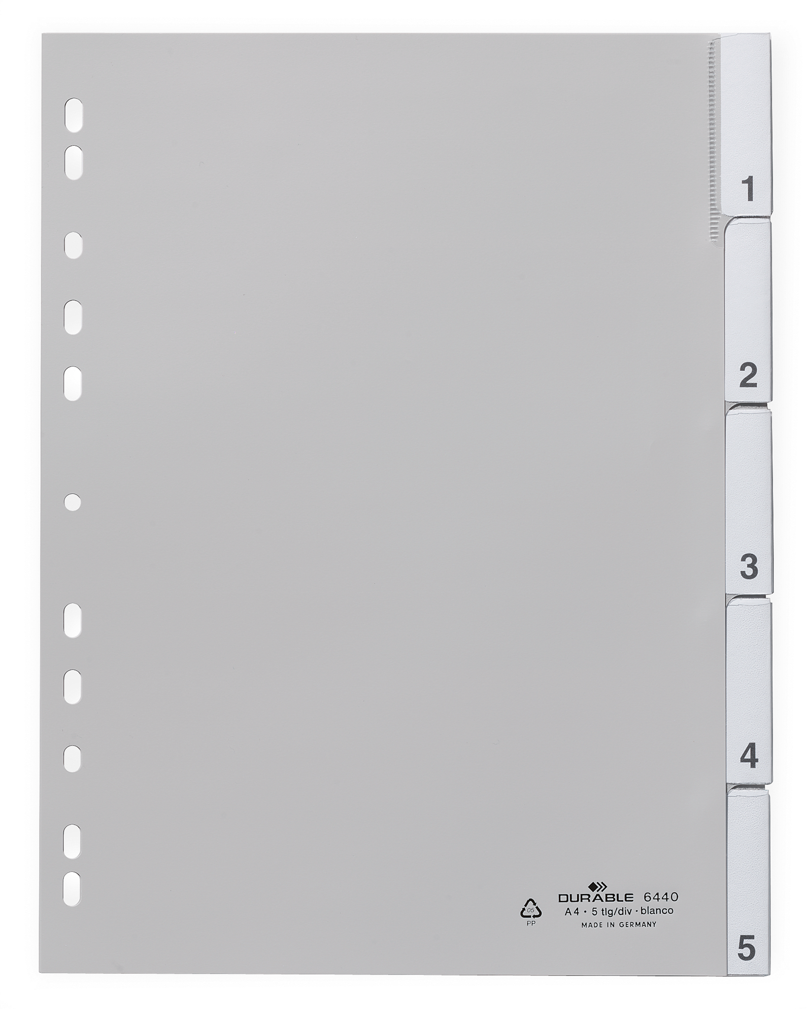 • Register med forstærkede faner og udskiftelige indstik • Med fortrykte indstik og blanke ekstra indstik • Blanke indstik til professionel udskrivning med DURAPRINT® • Inddeling/blad: 1-5 • Universalhuller • Af PP • Til format: dækker helt A4-højformat • Mål: 297 x 215/230 mm