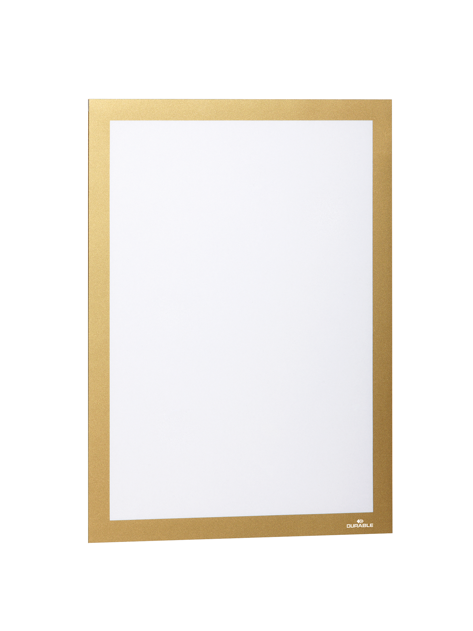 Den professionelle måde at annoncere. Den selvklæbende inforamme DURAFRAME® er den ideelle løsning for at vise oplysninger på solide og glatte overflader. Viser oplysninger på en professionel og elegant måde Hurtigt at installere og udskifte indholdet takket være den oplukkelige magnetisk ramme Nemt at sætte op på faste og glatte overflader; kan fjernes igen fra glas Anvendelsesområder: at vise og præsentere informationer i A4 format, f.eks. skilte, kampagnetilbud, reklamer, åbningstider Ved anvendelse på glas, kan informationen læses fra begge sider Rammen ser identisk ud fra begge sider Til anvendelse i stående eller liggende format Ydermål: 236 x 323 mm Placering af selvklæbende DURAFRAME® inforammer på malet, coatede og laminerende overflader, anbefales ikke, da denne overflade kan blive beskadiget når rammen fjernes. Til disse overflader anbefaler vi DURAFRAME® WALLPAPER som findes i A3 og A4 formater. 2 stk/pose guld