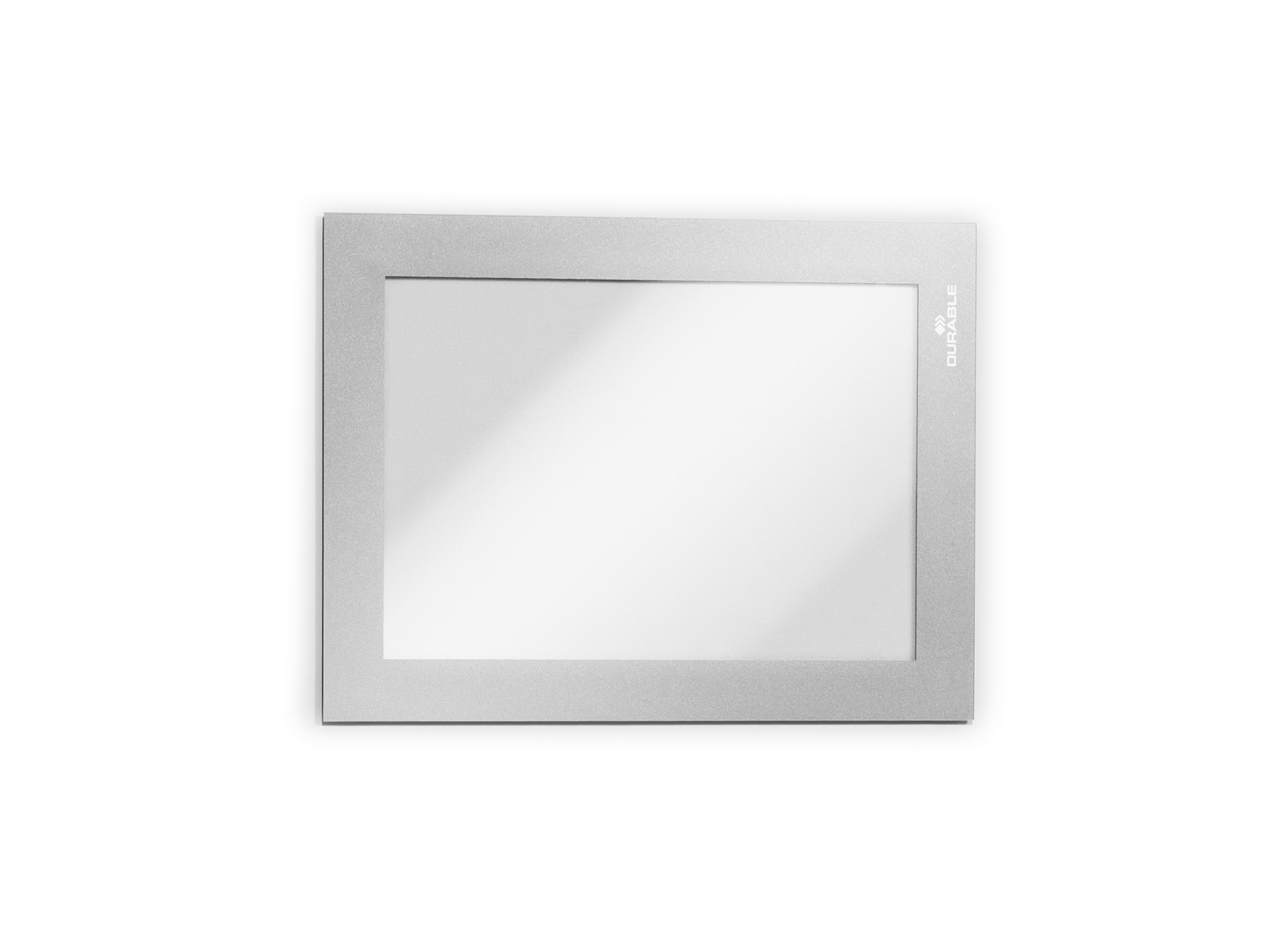 Den professionelle måde at annoncere. Den selvklæbende inforamme DURAFRAME® er den ideelle løsning for at vise oplysninger på solide og glatte overflader. Viser oplysninger på en professionel og elegant måde Hurtigt at installere og udskifte indholdet takket være den oplukkelige magnetisk ramme Nemt at sætte op på faste og glatte overflader; kan fjernes igen fra glas Anvendelsesområder: at vise og præsentere informationer i A6 format, f.eks. skilte, kampagnetilbud, reklamer, åbningstider Ved anvendelse på glas, kan informationen læses fra begge sider Rammen ser identisk ud fra begge sider Til anvendelse i stående eller liggende format Ydermål: 176 x 130 mm Placering af selvklæbende DURAFRAME® inforammer på malet, coatede og laminerende overflader, anbefales ikke, da denne overflade kan blive beskadiget når rammen fjernes. Til disse overflader anbefaler vi DURAFRAME® WALLPAPER som findes i A3 og A4 formater. 2 stk/pose sølv