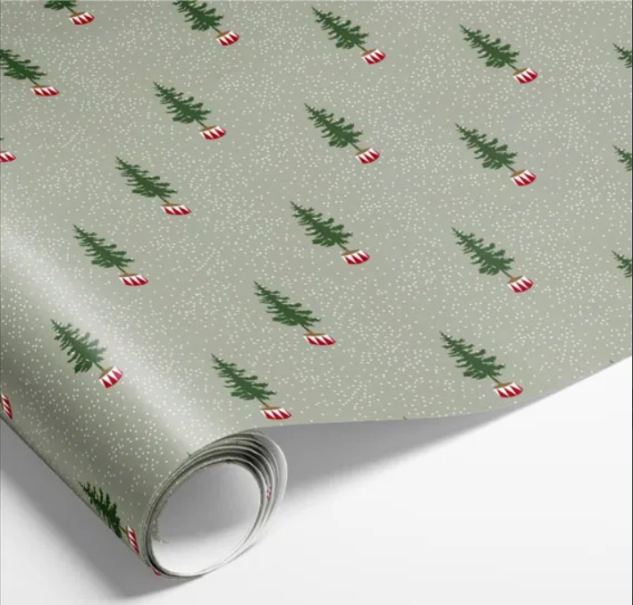 GRÅ GAVEPAPIR MED JULETRÆER