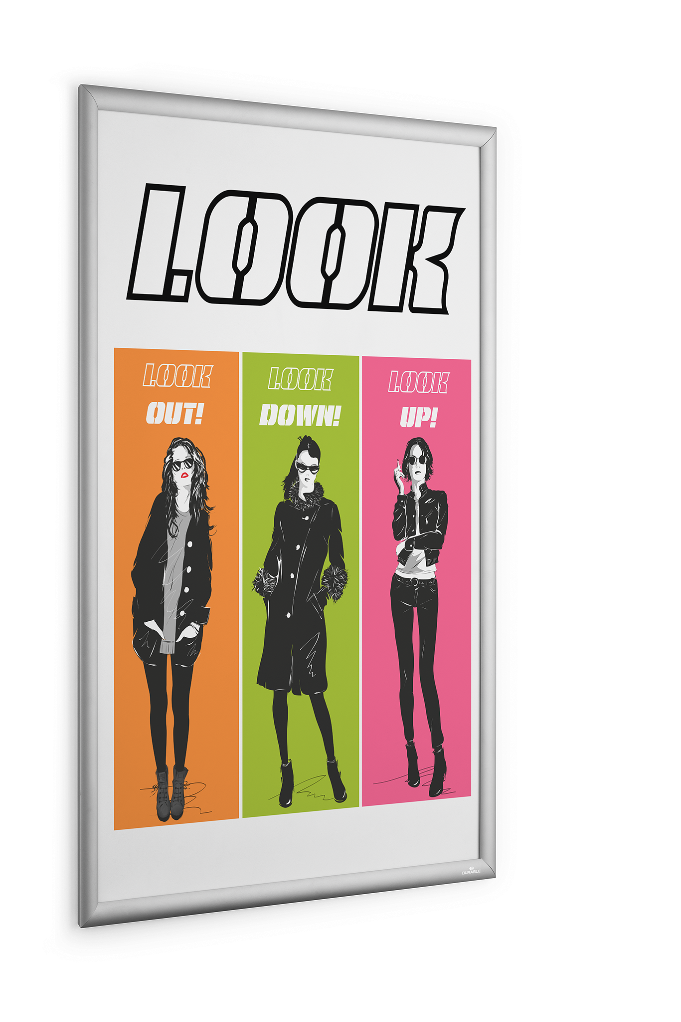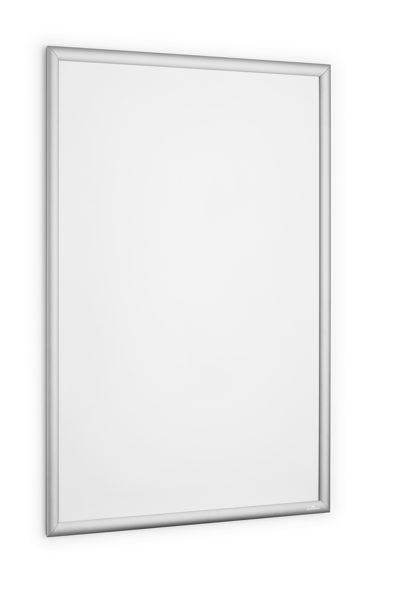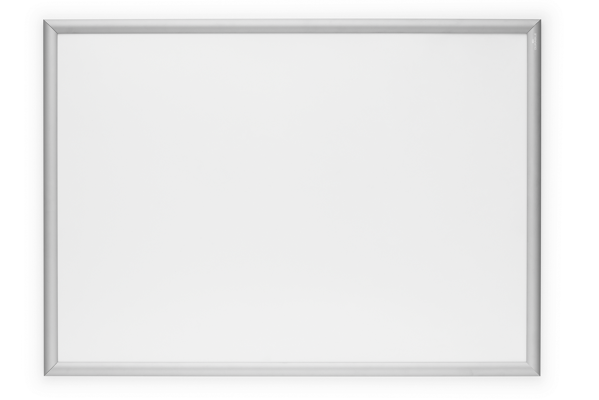 Klassiske klikramme, snapramme, klapramme er nyttige i fitnesscentre, kontorer, hoteller, messer og butikker til pænt at vise information, der skal udskiftes fra tid til anden. Udskift dokumentet ved at folde alle 4 sideprofiler op og fjerne den UV-bestandige og antireflekterende plastfront, der beskytter materialet. Klikrammen er fremstillet med en 25 mm bred anodiseret aluminiumprofil, hvilket gør aluminiumoverfladen mere holdbar. Bagsiden af klikrammen er fremstillet af holdbart polystyren. Monteringssæt medfølger, det indeholder skruer og ravpluks samt selvklæbende tape til valgfri vægmontering i høj- eller tværformat. Udvendige dimensioner: 660 x 900 x 12 mm, H x B x D Indvendige dimensioner: 630 x 870 mm, H x B