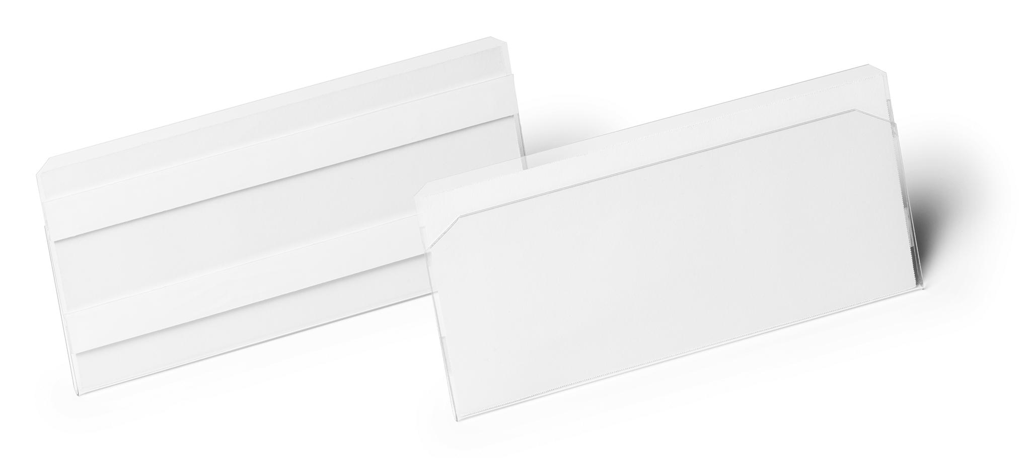Klar og tydelig mærkning af butiks- og lagerreoler, skabe, døre, paller, containere og strømliner arbejdsprocesserne på lagre og produktionsanlæg. Den transparente, selvklæbende lagerlomme/etiketholder af kraftig PET-plast kan aflæses med en scanner. Etiketterne er nemme at udskifte, da holderen er åben i toppen og på begge sider og desuden har den skrå hjørner, så man nemt kan komme til etiketten. Monteres ved at fjerne papiret fra tapestrimlerne, de kan fjernes igen uden at efterlade limrester, efter endt brug. En gratis skabelon til etiketten findes på www.duraprint.dk. Indvendige mål: 150 x 67 mm (B x H) Udvendige mål: 153 x 72 mm (B x H) Tilbehør: Etiketter på A4-ark, art. nr. 100302