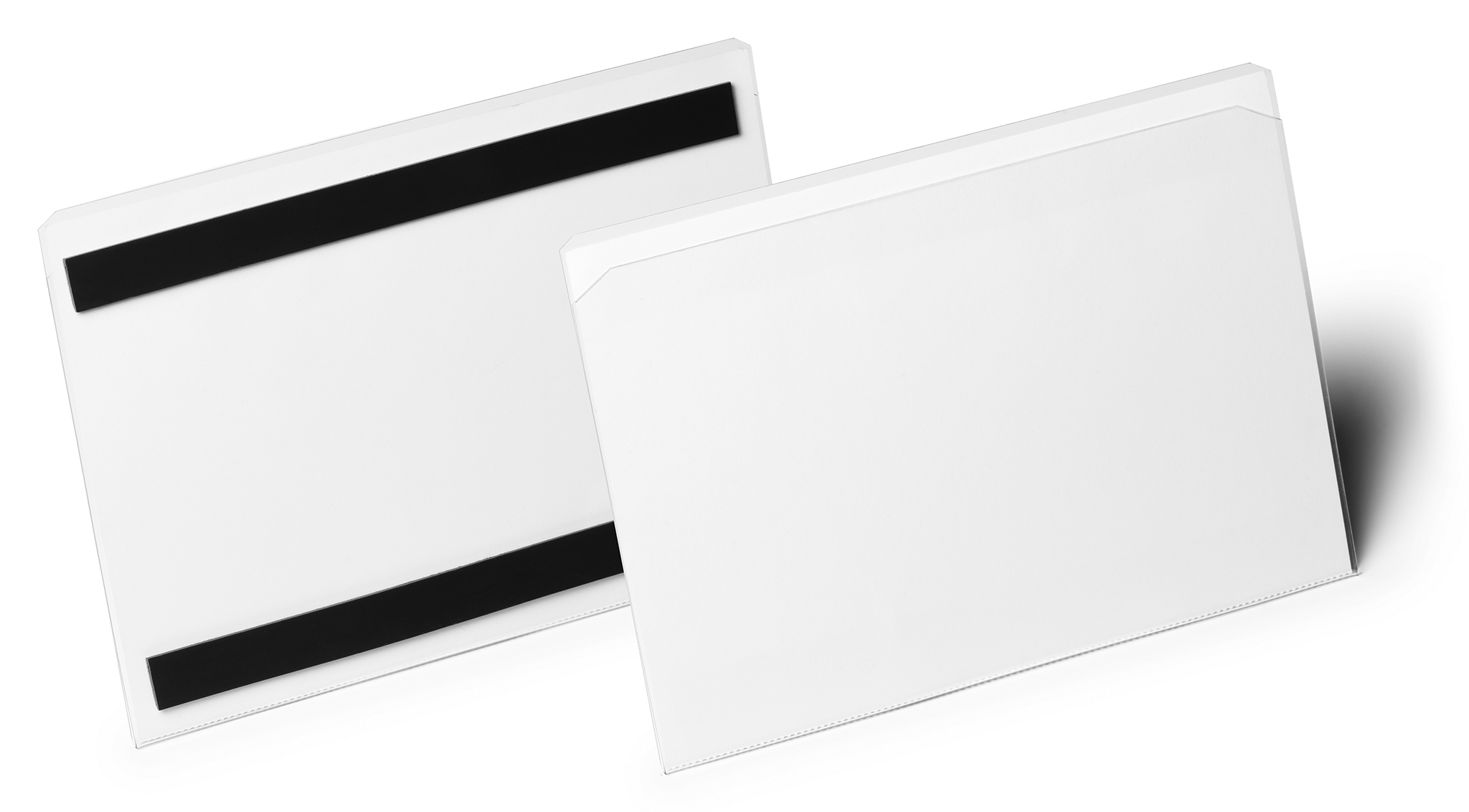 Klar og tydelig mærkning af butiks- og lagerreoler, skabe, døre, containere i metal forbedrer og strømliner arbejdsprocessen på lager- og produktionsfaciliteter. De transparente, magnetiske etiketholdere af kraftig PET-plast kan læses med en scanner. Lagerlommerne er nemme at udskifte, da lommerne er åbne i toppen og på begge sider og desuden har skrå hjørner, så det er nemt at få adgang til etiketten. To magnetstrips på bagsiden sikrer, at lommen sidder fast på plads. Hver etiketholder er dækket af en gennemsigtig plastfilm, der beskytter mod ridser under transport og opbevaring. Beskyttelsesfilmen fjernes nemt, når produktet er klar til brug. Der findes en gratis skabelon til etiketten på www.duraprint.dk. Indvendige mål: A5L (210×148 mm B x H) Ydre mål: 213 x 153 mm (B x H) Tilbehør: Etiketter på A4-ark, art. nr. 485502