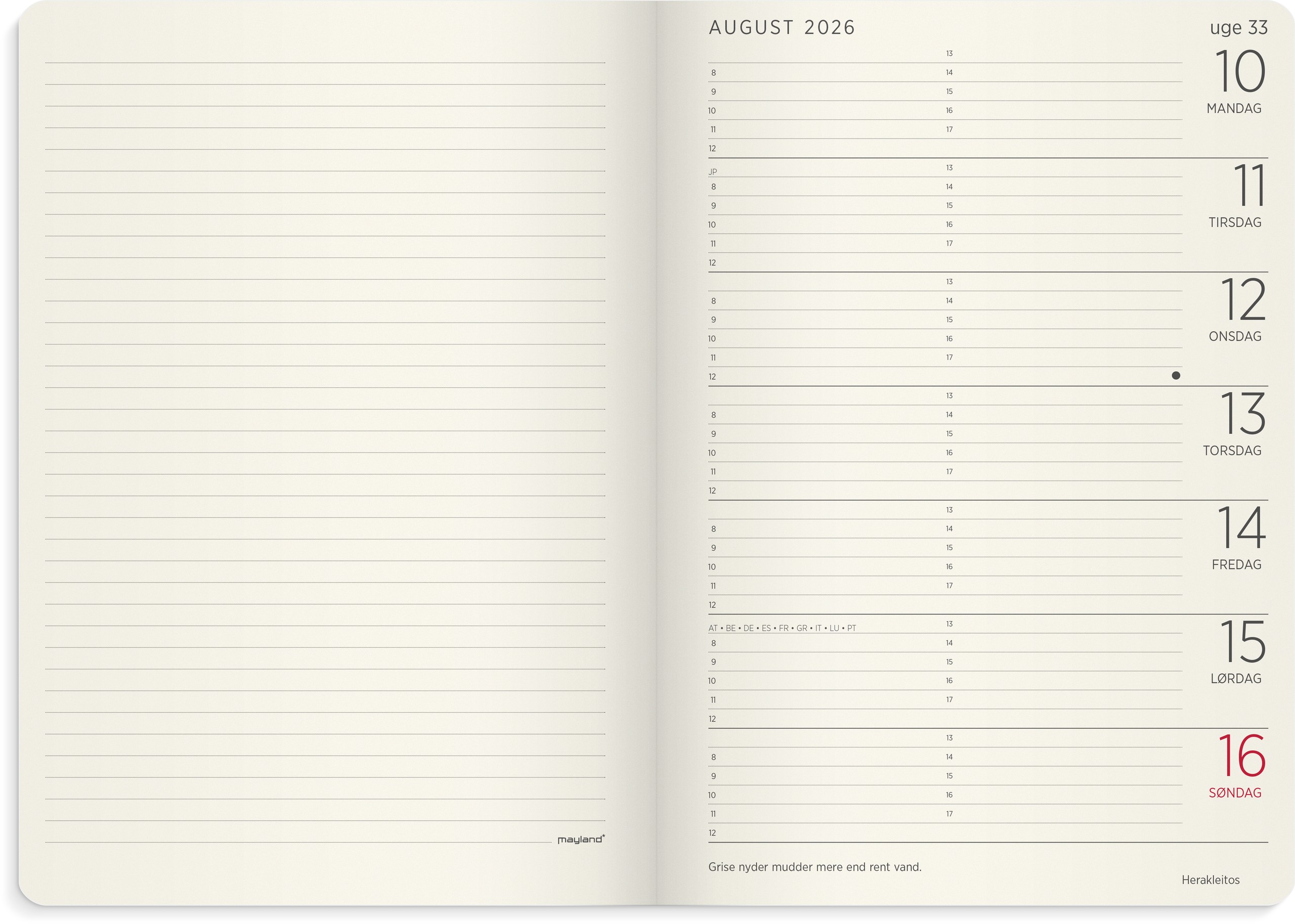 MAYLAND 2026 A5 UGEKALENDER TVÆR BRUN
