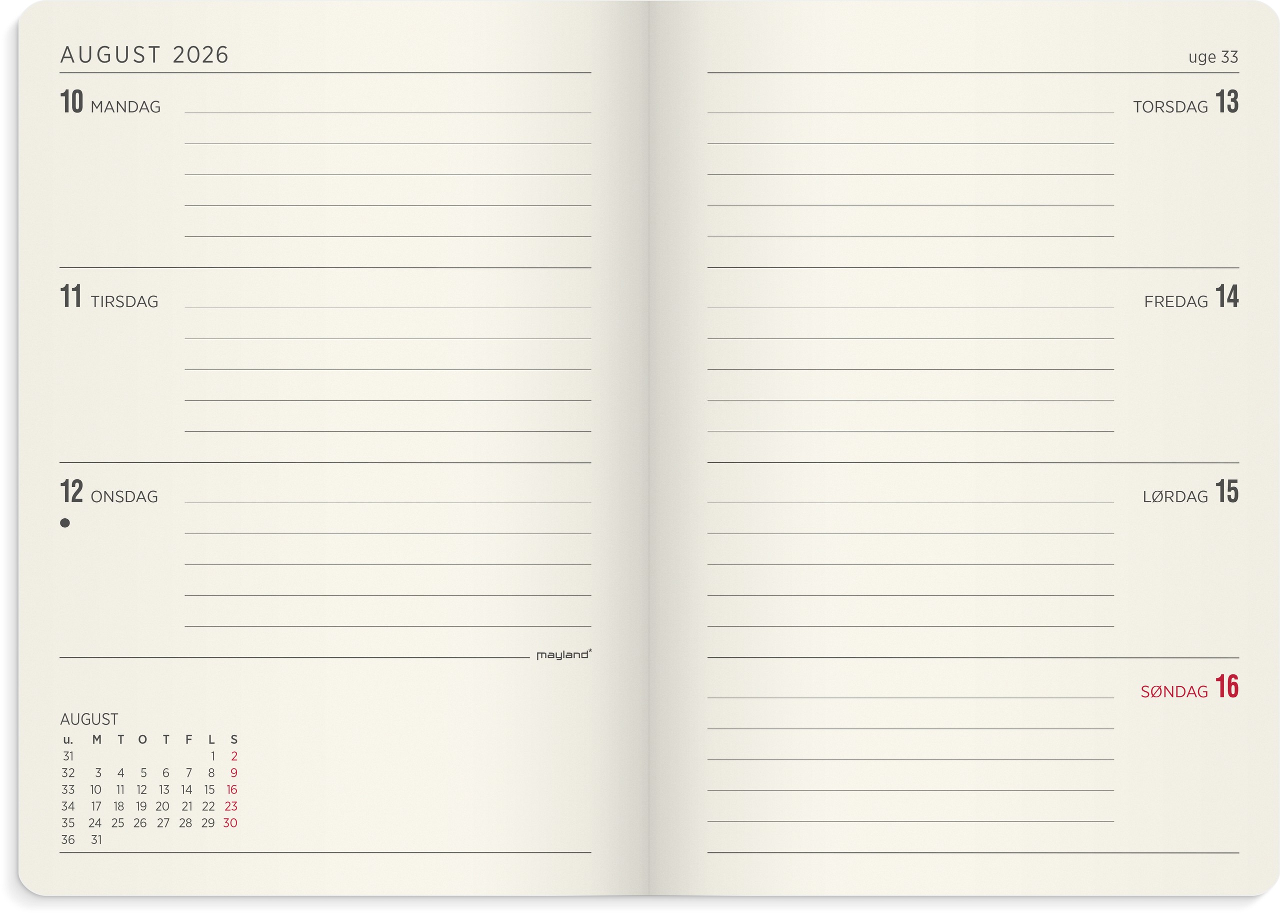 MAYLAND 2026 A6 UGEKALENDER TVÆRF.