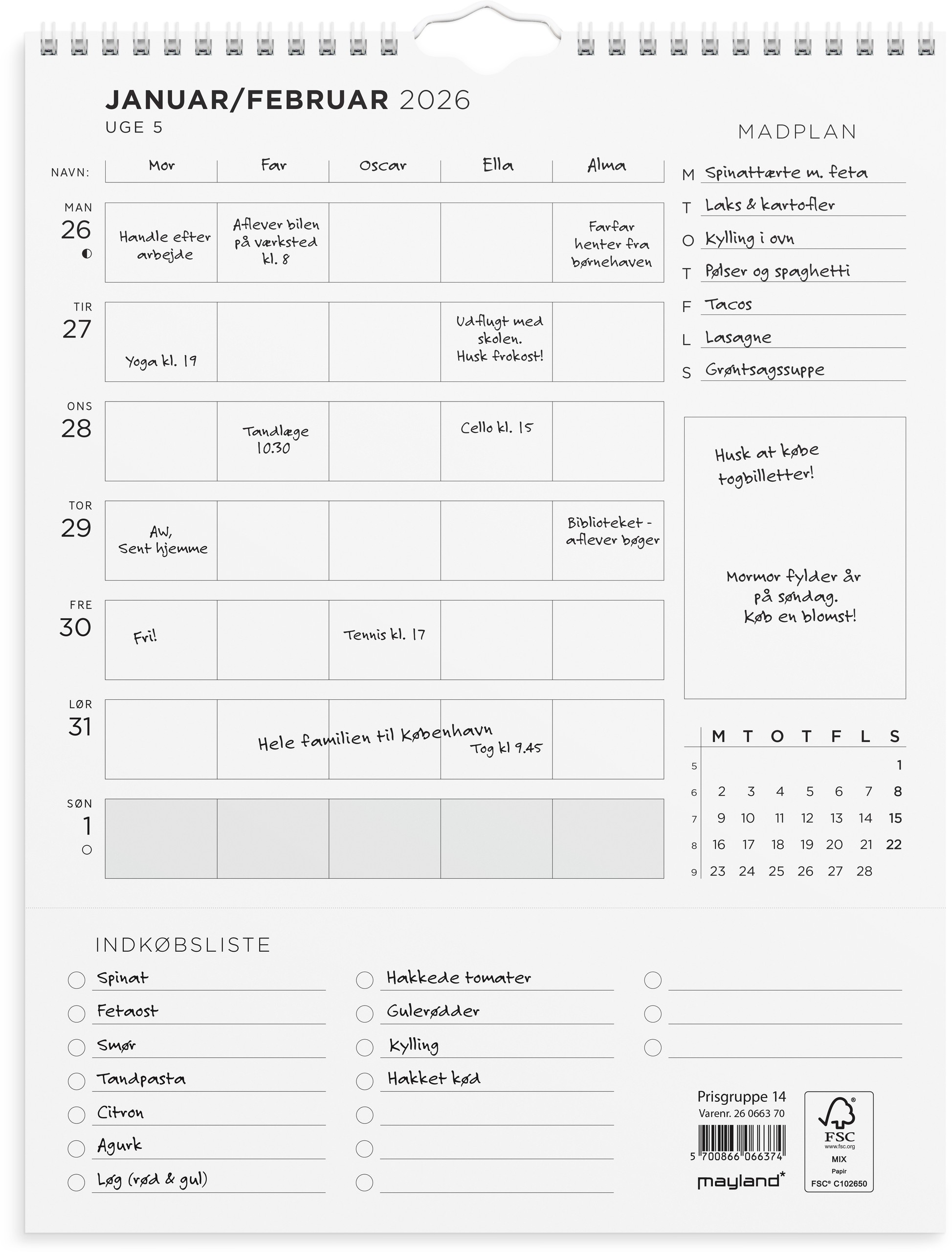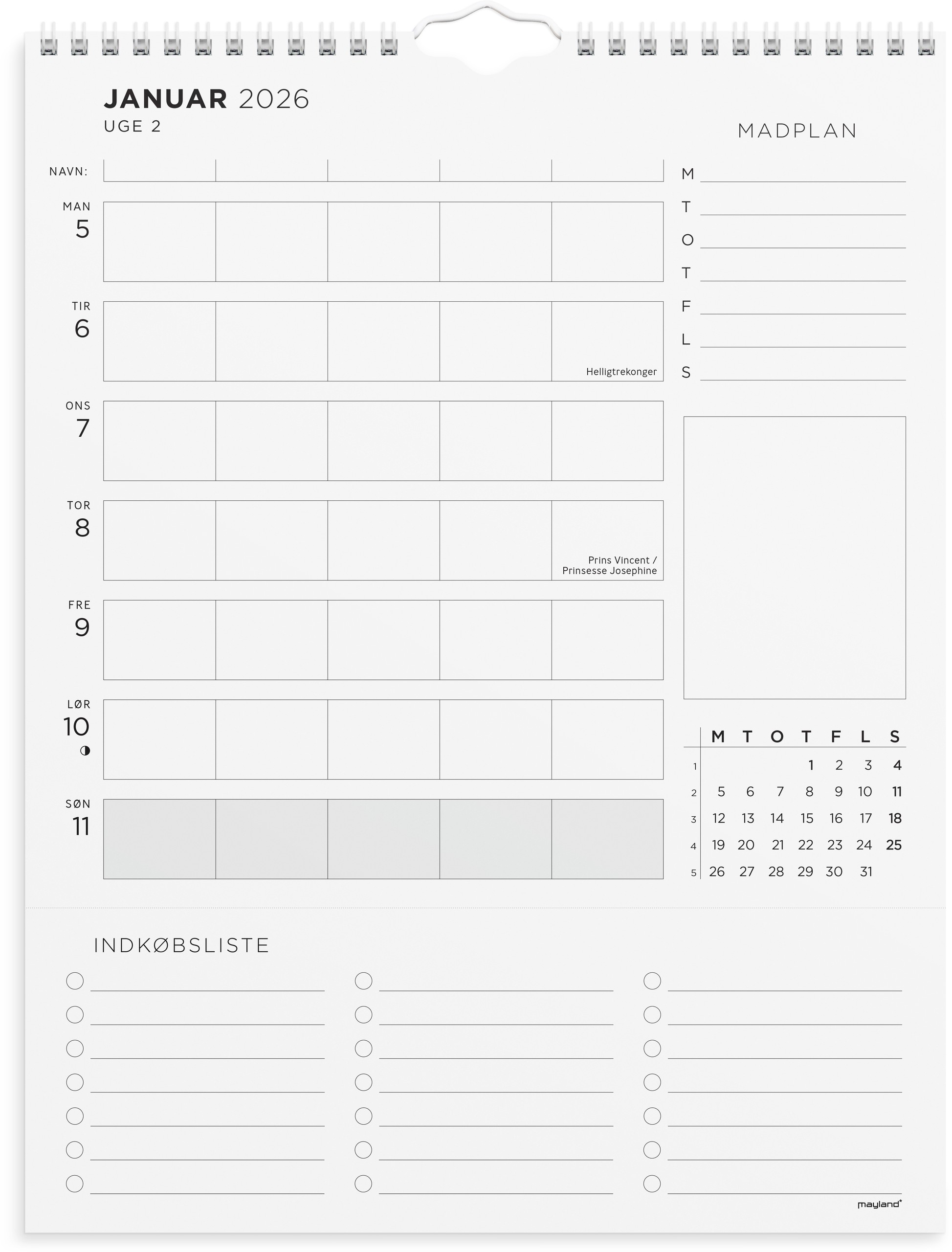MAYLAND 2026 FAMILIEKALENDER UGEPLAN