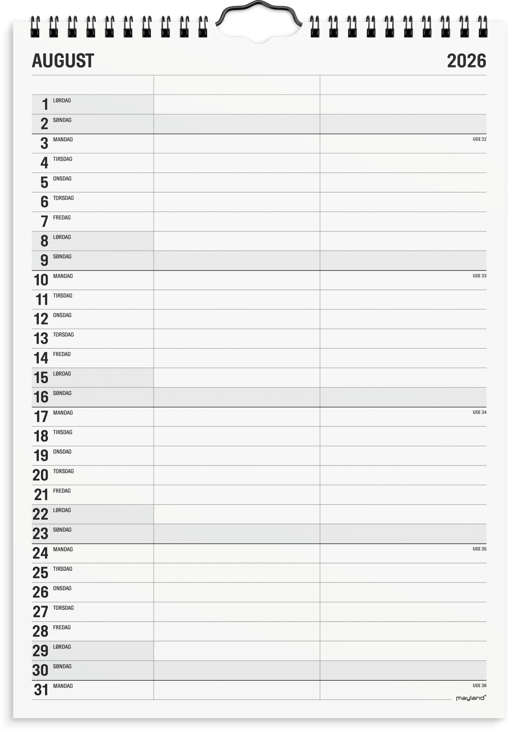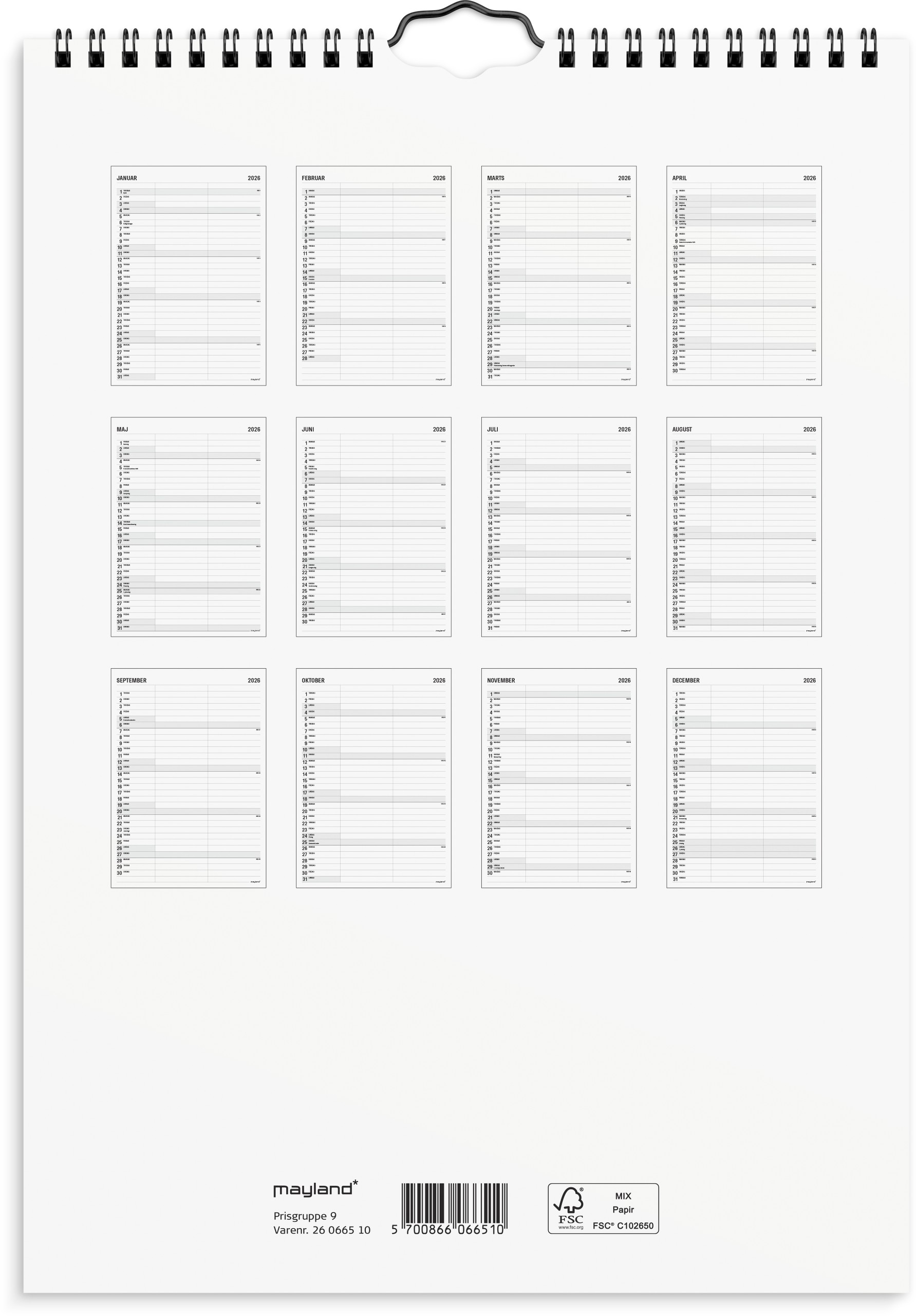 MAYLAND 2026 VÆGKALENDE BLACK & WHITE