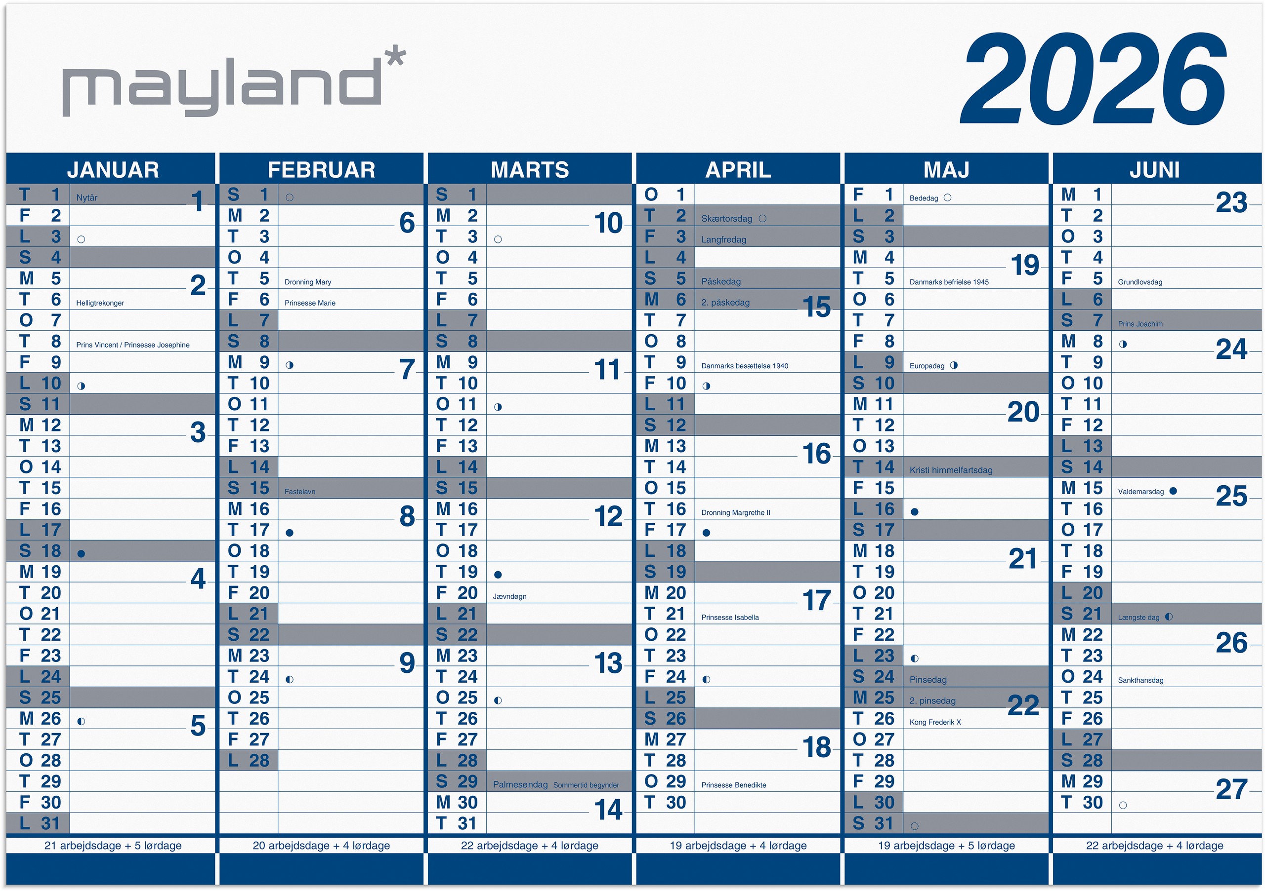 MAYLAND 2026 VÆGKALENDER KÆMPE