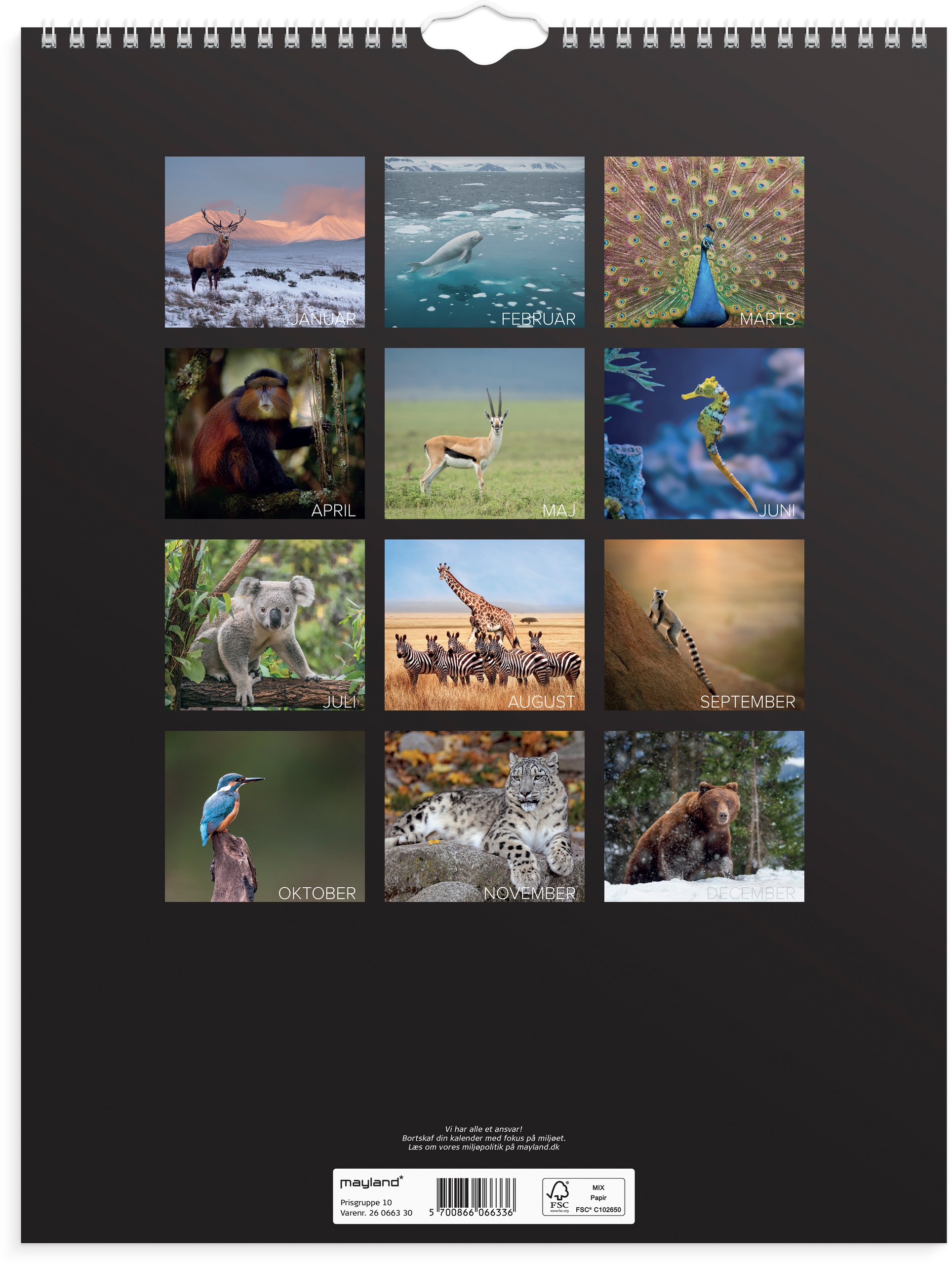 MAYLAND 2026 VÆGKALENDER VERDENS DYR