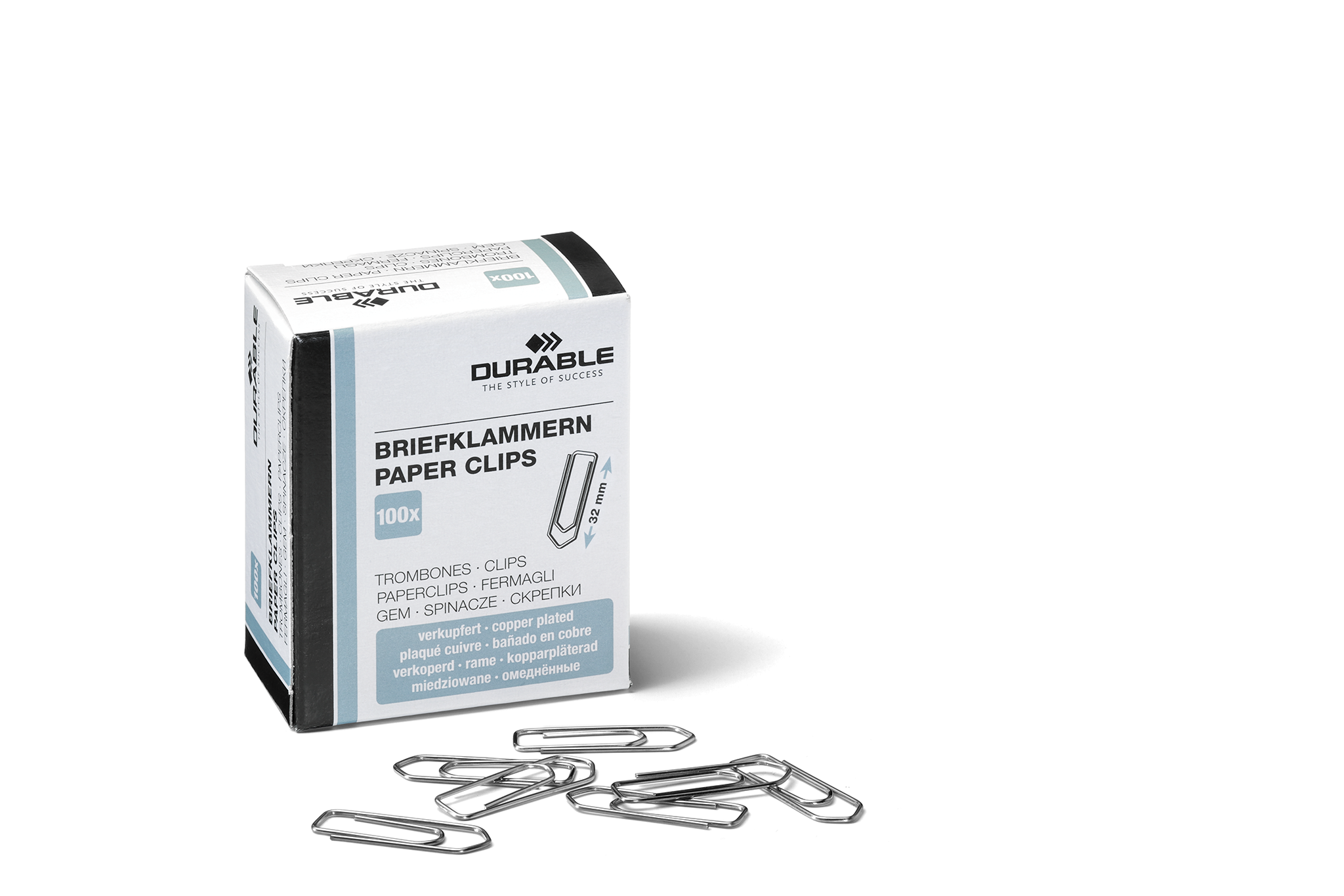Papirclipsen – den praktiske flade papirclips, der holder papiret sammen, og som findes på de fleste arbejdspladser og i de fleste hjem – er en ægte klassiker. Papirclipsene er lavet af op til 60% genbrugsstål og har en kobberbelagt, guldglinsende finish, som er nikkelfri. Ståltråden under den belagte overflade indeholder nikkel, hvilket betyder, at en ekstremt nikkelfølsom person kan reagere, hvis der kommer en ridse i belægningen, eller hvis man rører ved papirclipsens ender (sådan er de fleste papirclips på markedet fremstillet, de er sjældent fremstillet af massiv kobbertråd). 32 mm lange. Æske med 100 stk.