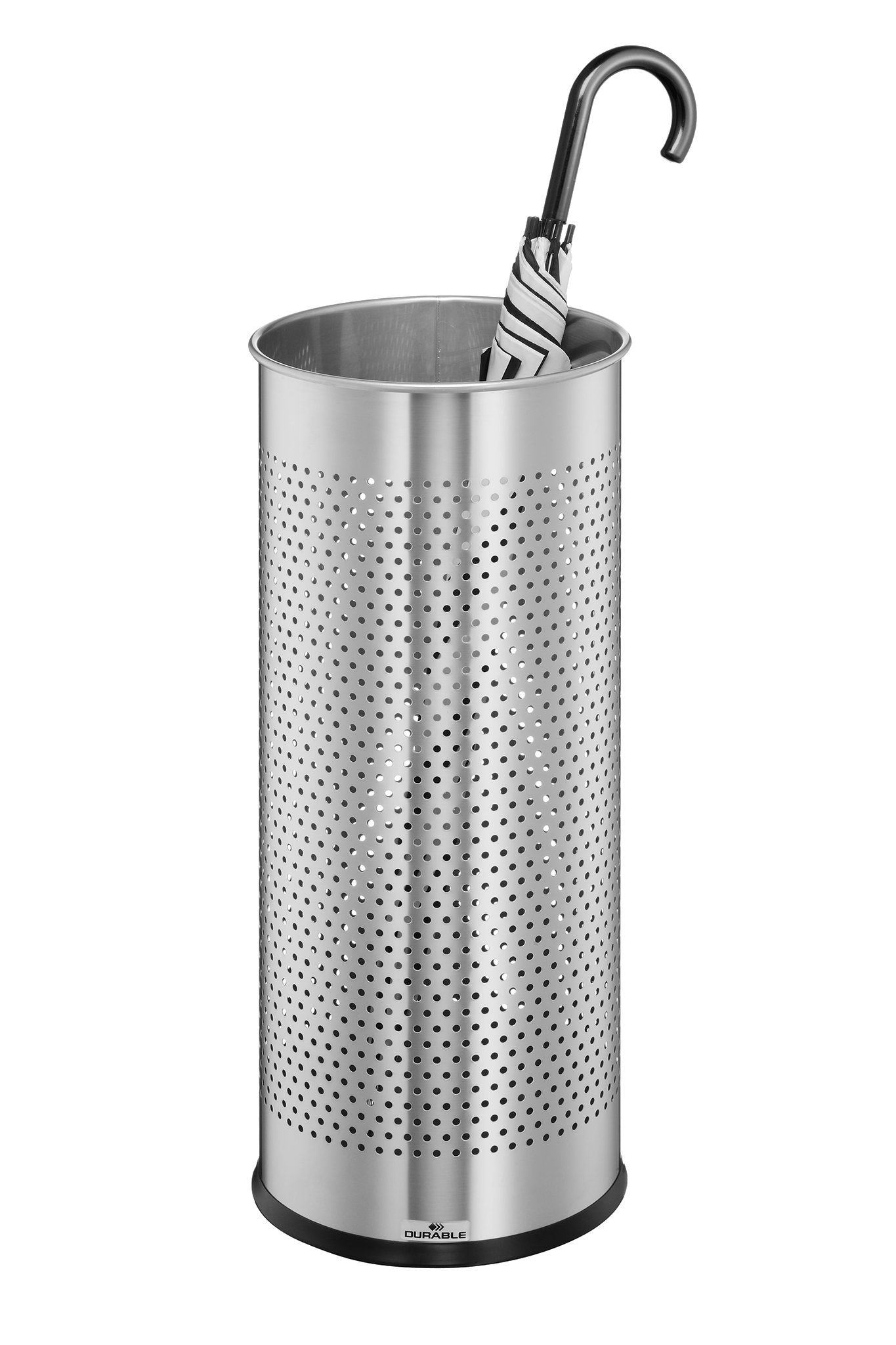 Stilig, dekorationshullet paraplyholder af rustfrit stål. Ideel til f.eks. indgange på arbejdspladsen, i hjemmet, hoteller eller restauranter. Kan også anvendes som papirkurv. Anti-slip bund giver også beskyttelse gulv. Miljøvenligt materiale (fra> 50% genbrugsmateriale og er 100% genanvendeligt). Kapacitet 28,5 liter Mål: HxØ 620x260mm