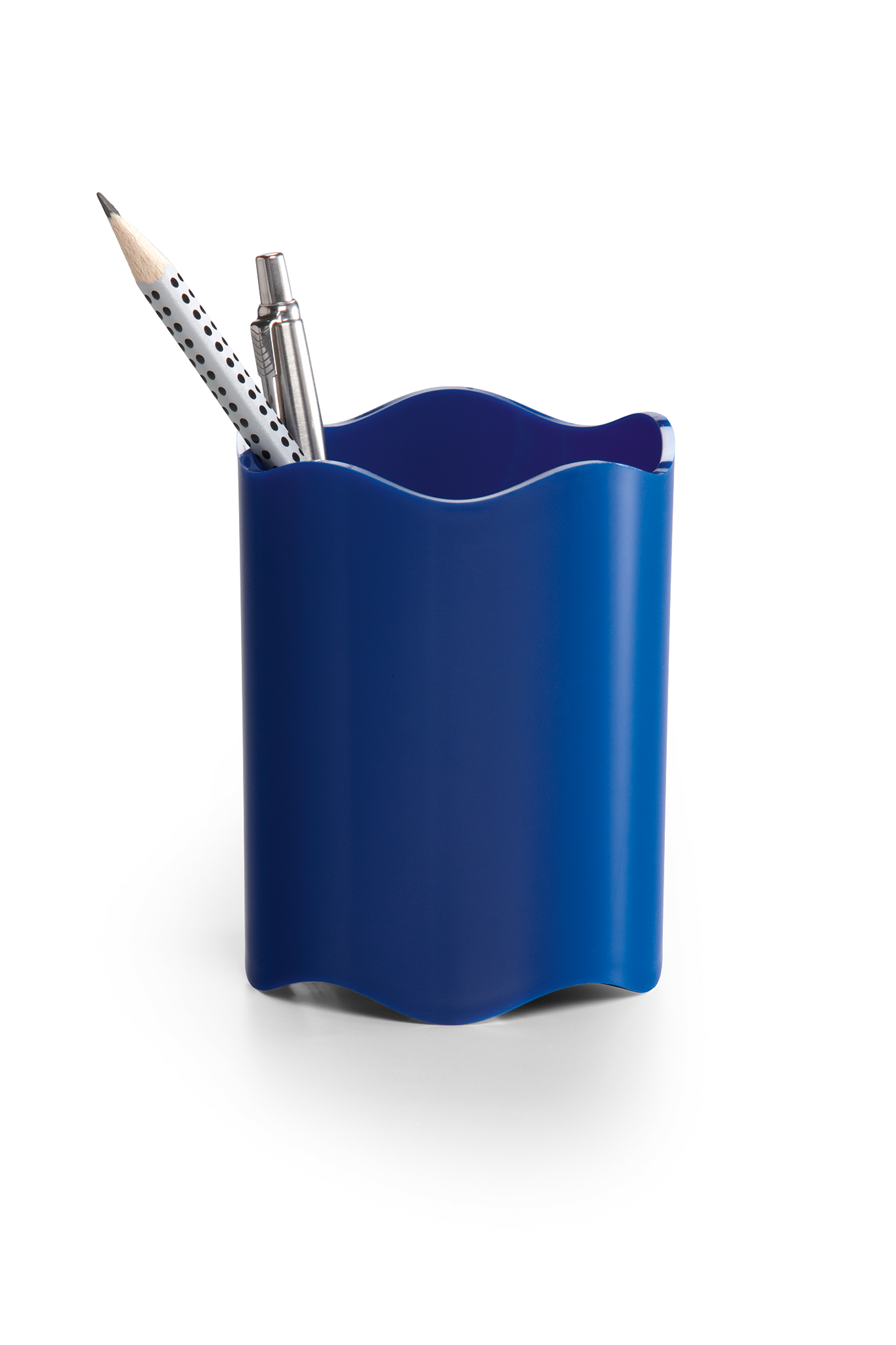 Rund penneholder med bølget kant til opbevaring af penne, sakse osv. Mål: ø 80mm. Højde 102mm.