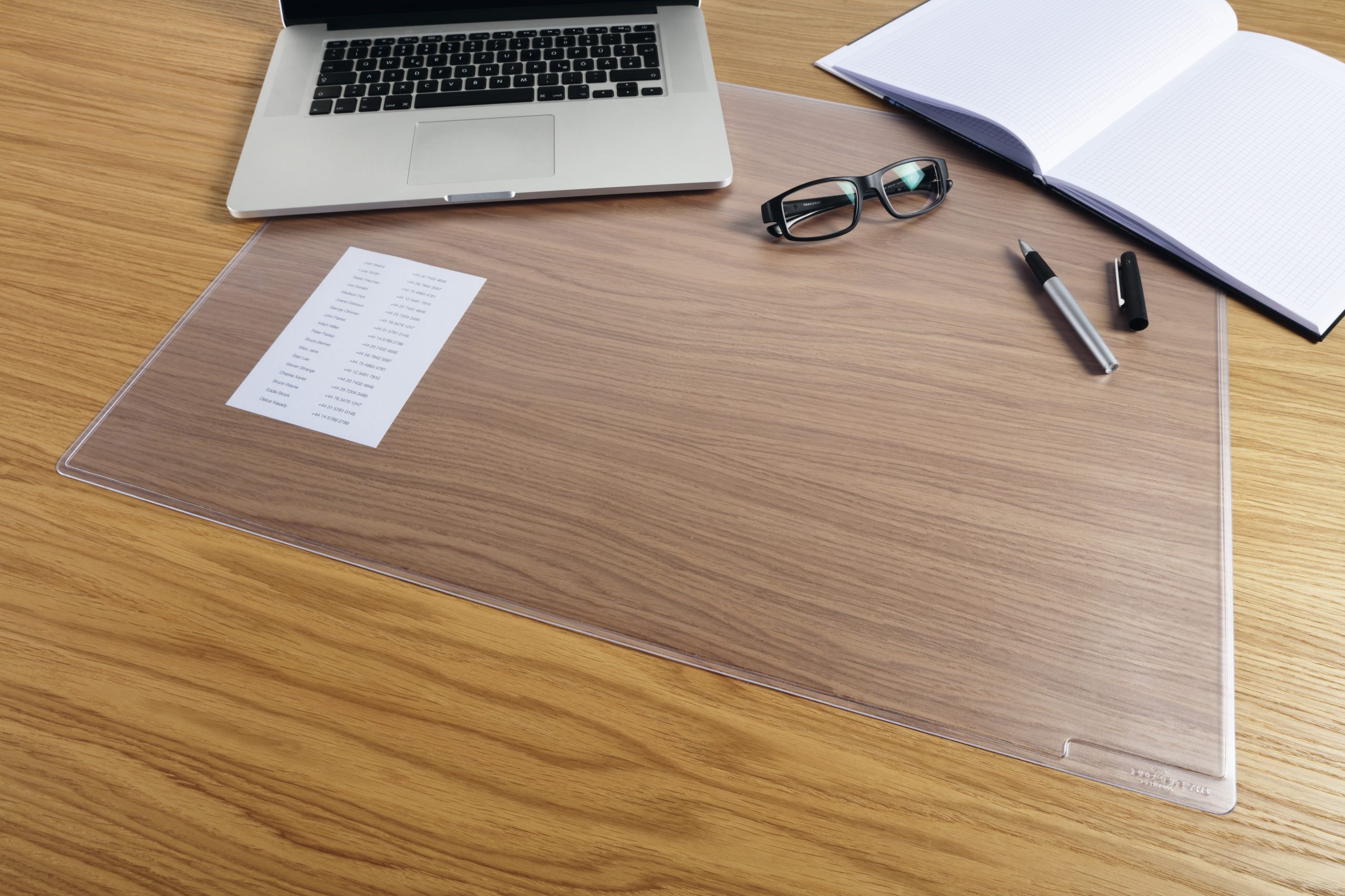 Transparent og anti-genskin skriveunderlag. Ideel til underliggende notater mm.