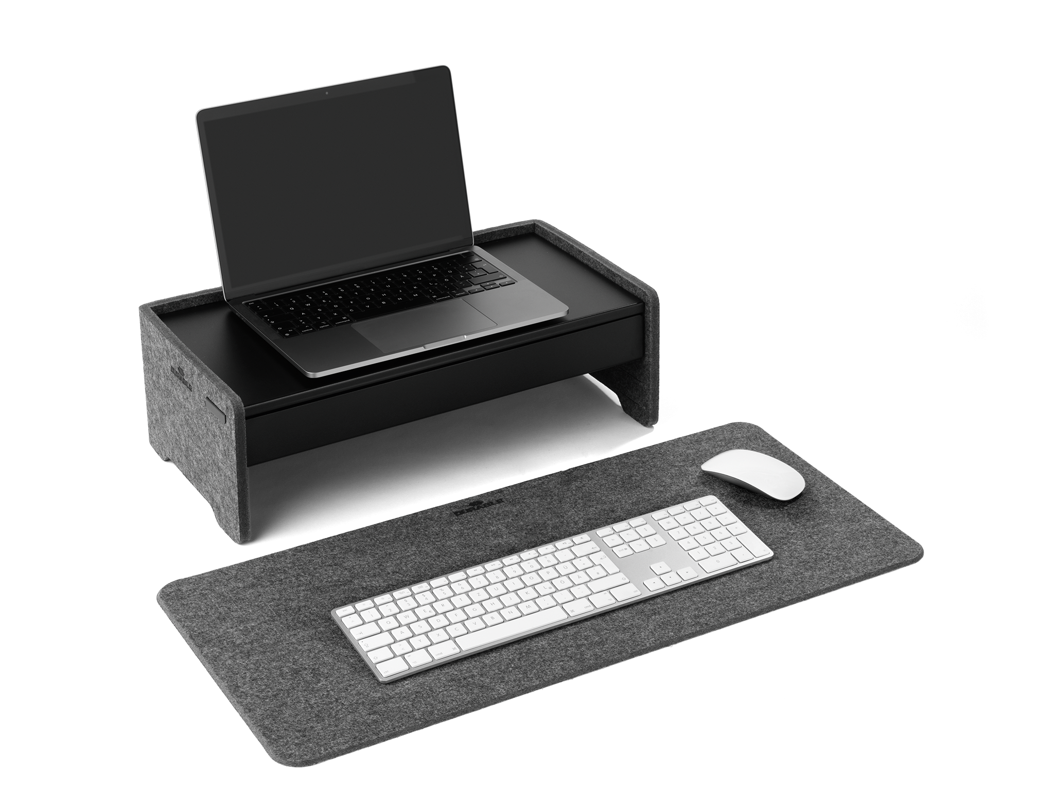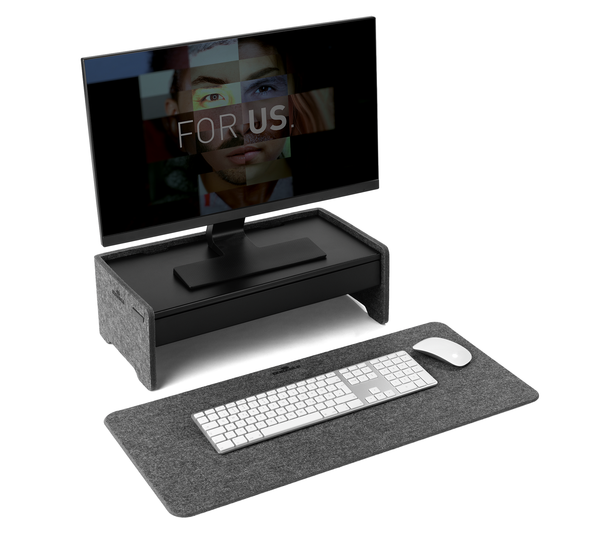 Med en monitor stander placeres computerskærmen i en god ergonomisk højde, samtidig med at der frigøres bordplads. Kombiner det med en skuffe til opbevaring af kuglepenne, dokumenter, kabler osv. EFFECT-serien, som denne skuffe er en del af, er lavet af metal og har en blød, lydabsorberende og slidstærk filtbundmåtte. Filten er lavet af PET-plast, hvoraf 60% er indsamlet og genanvendt PET-plast (rPET). To glideskinner er presset ud af bunden af skuffen og fastgjort til skærmstativet. Hullerne efter disse skinner er dækket af filtmåtten. Produkterne i serien er 100% genanvendelige og er bæredygtigt emballeret med ressourcebesparende og plastfrie materialer. Mål: 46,8 x 5,3 x 22,1 cm (BxHxD) Tilbehør: Monitor stander EFFECT, art. nr. 508158