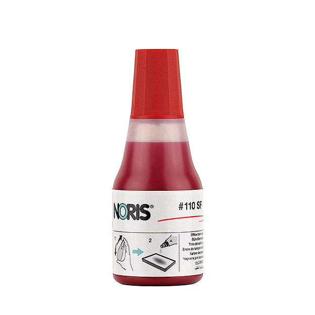 Stempelfarven 110 fra NORIS Color er perfekt til genindfarvning af alle almindelige stempelpuder til kontorbrug. Den er kemisk tilpasset farverne fra producenterne Trodat, Colop og mange flere. Den tørrer hurtigt på papiret, men ikke i stempelpuden, da den udnytter fugten i luften til at holde sig frisk.